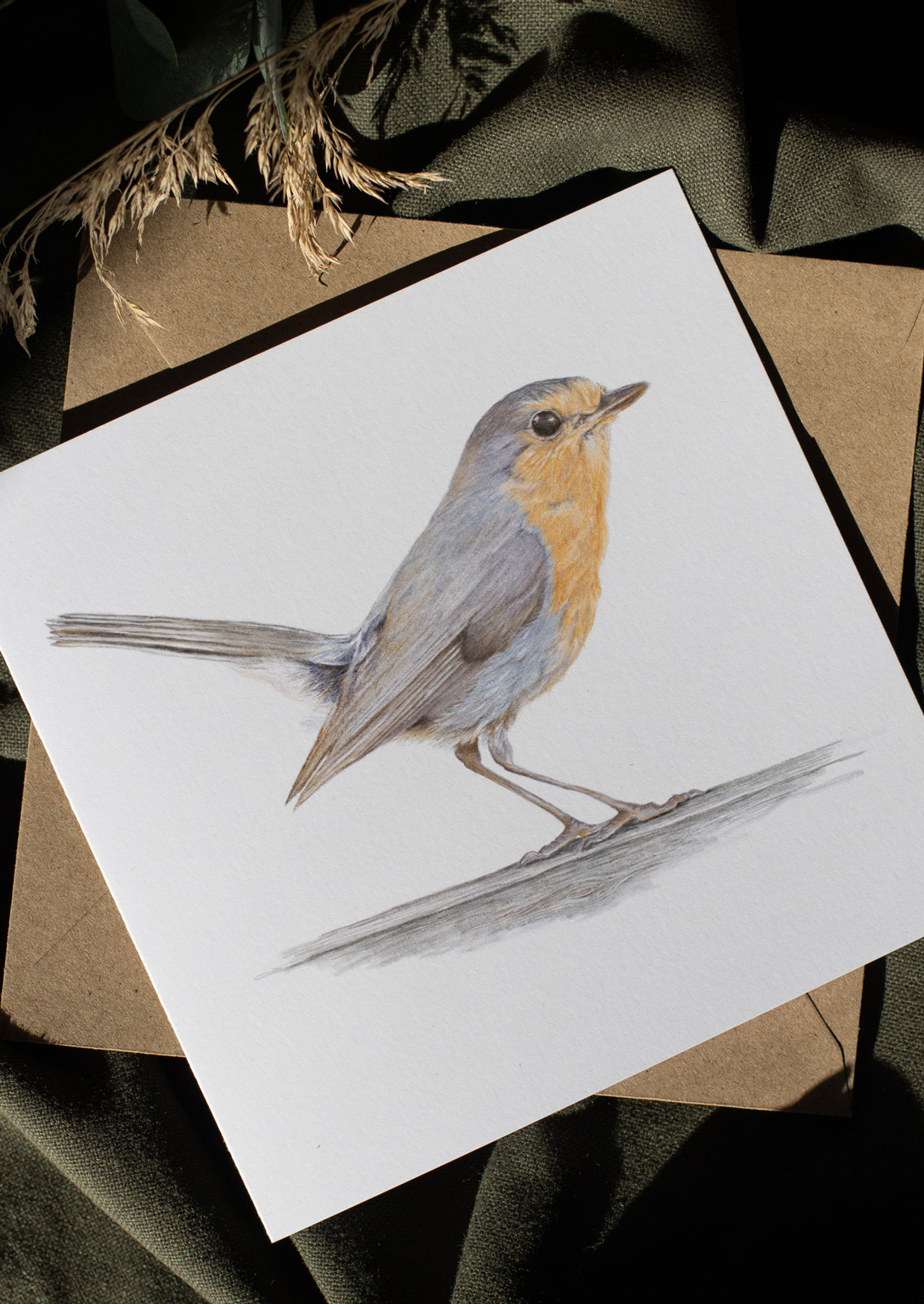 Rödhaken – vikt kort 15 x 15 cm