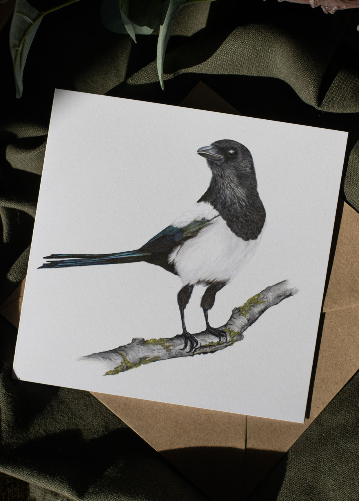 Skicka en hälsning till vänner och bekanta med ett unikt kort med fågelmotiv. Eller använd det som ett gratulationskort eller julkort! Kortet har en vit insida och ett brunt eller vitt kuvert ingår.