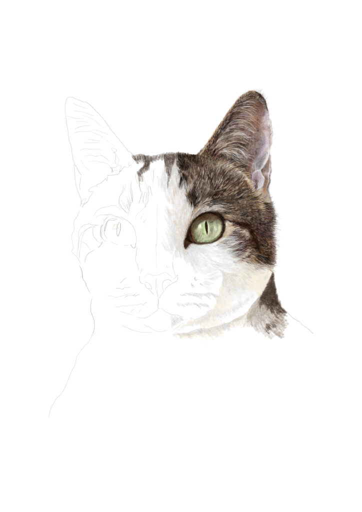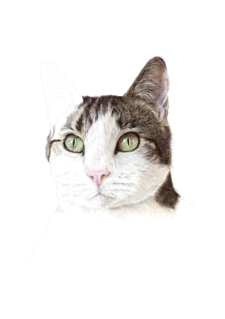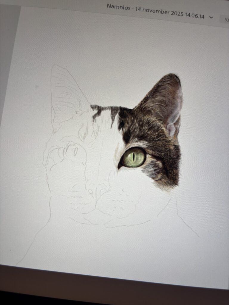 Början. Här har jag kommit bit på väg. Jag har hittat alla färger, vilket i början alltid är lite svårt. Ett öga är på plats och jag har hittat den rätta känslan 🙂